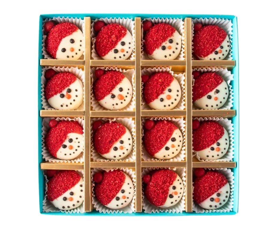 – 16 pieces White and colored chocolate covered Oreos designed as Snowman