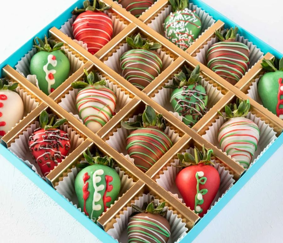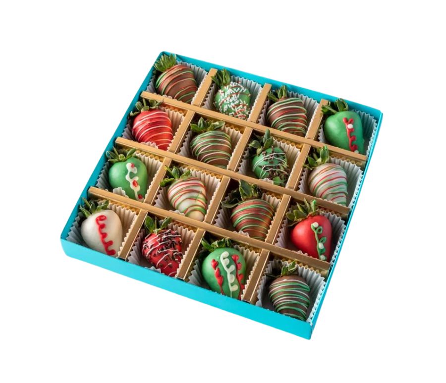 – 16pcs chocolate covered strawberries hand designed in Xmas theme