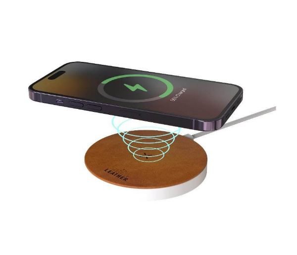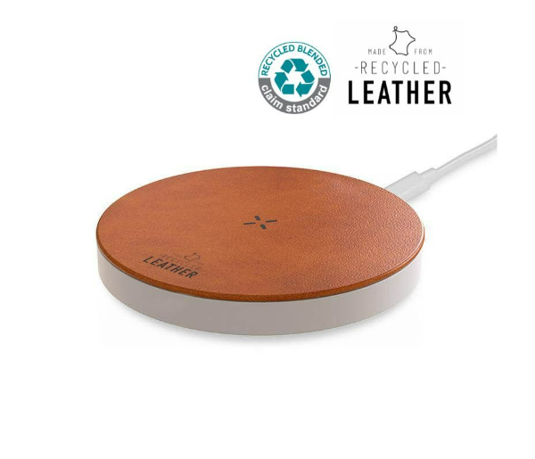 ANZIO – Recycled Leather 15W Wireless Charger – White/Tan