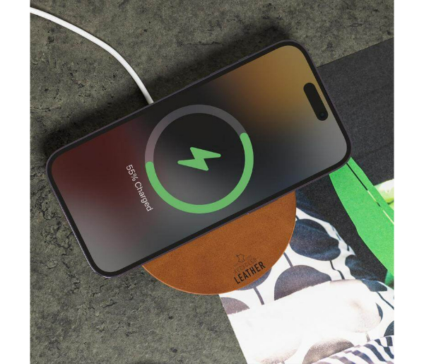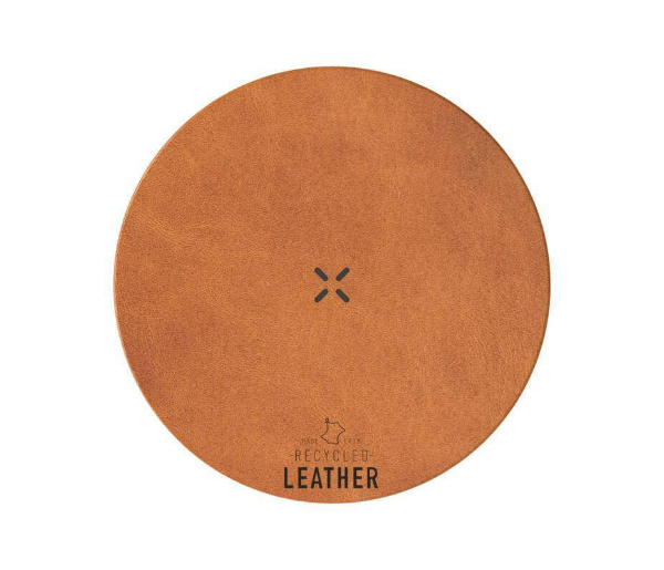 Anzio is an Executive 15W wireless charger made from RCS-certified recycled genuine leather with post-consumer recycled ABS. The wireless charging is compatible with all wireless devices, Android latest generations and iPhone 8 and above. With 4 anti-slip pads. Packed in recycled kraft paper gift box.