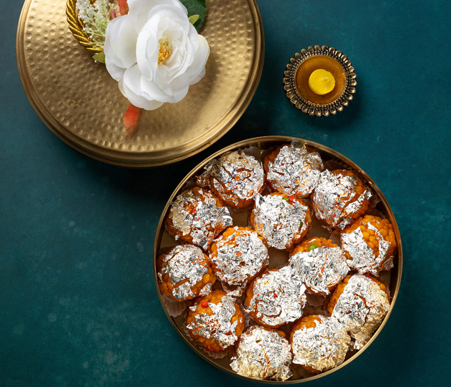 Brass Round Laddoo Box : Brass Laddoo box with Shahi Motichoor laddoo or Shahi Aata laddoo. Box can be used as a masala box or Roti box.