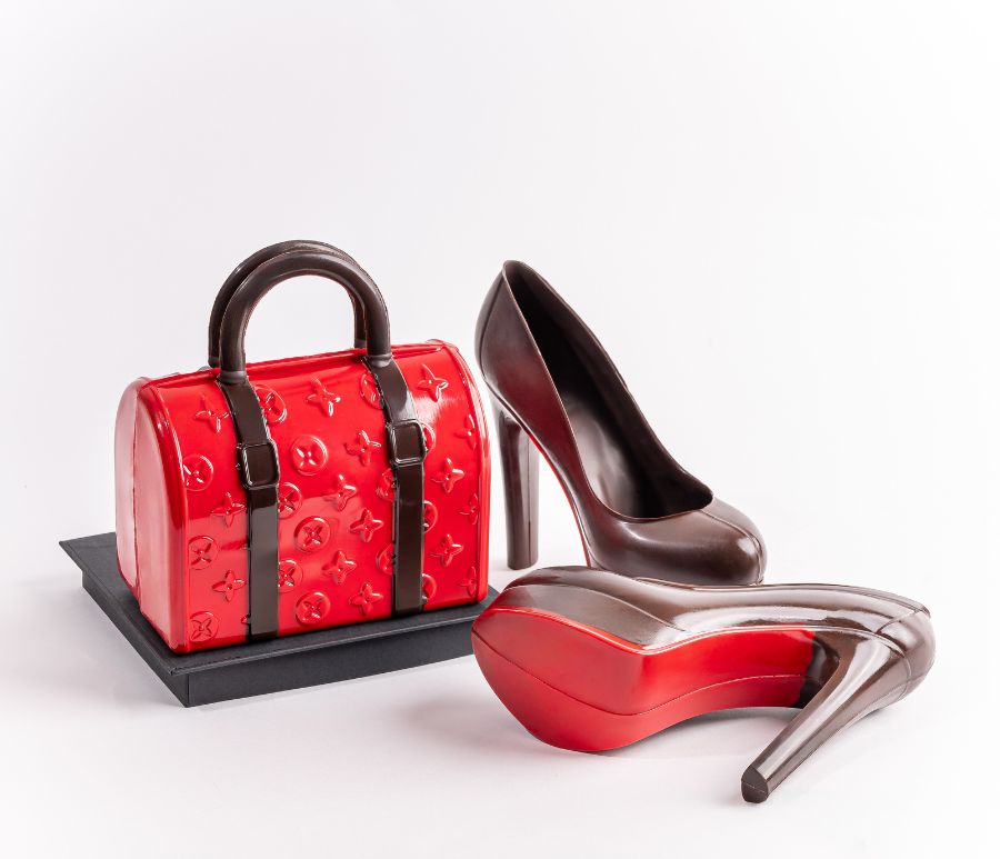 Chocolate Handbag and Red-Soled Heel Pair