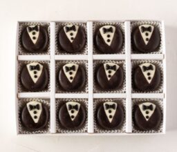 Personalize a message with name on their chocolates in the Custom Blue Box, or choose from one of their chocolate covered strawberry boxes.