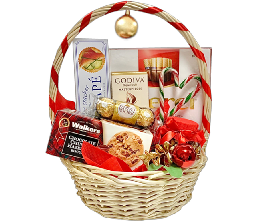 Our festive wicker basket contains