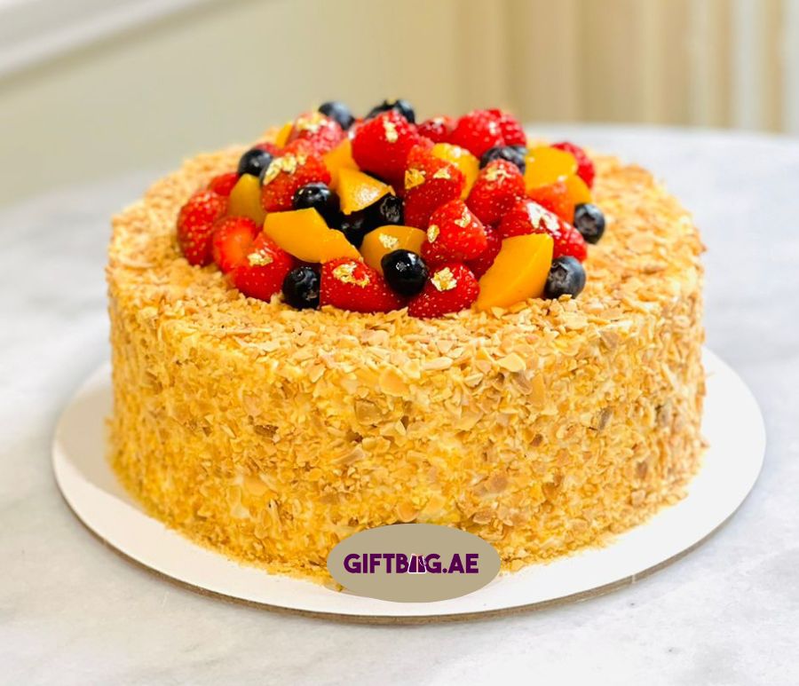 Dressed to impress! A sponge cake layered with custard, fresh cream and fruits is perfect for any celebration or an afternoon tea party. The custard is made to order and makes for the most moist and soft cake.