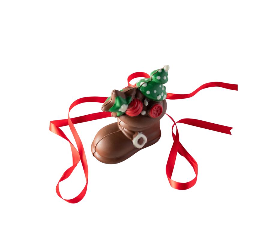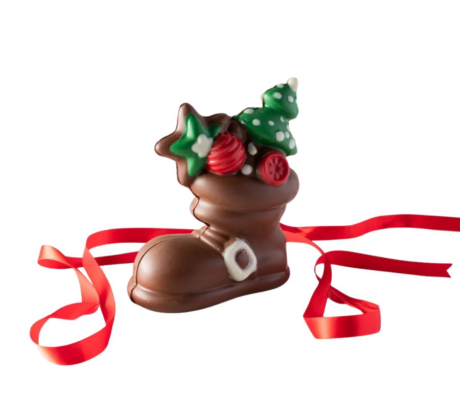 Approx. 600 grams pure Belgian milk chocolate Santa Boot decorated with colored chocolate