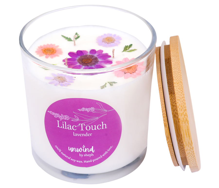 Completing the set with Lilac Touch 300ml soy wax candle 1 wick fills the air with a gentle floral aroma, perfect for creating a calm and cozy atmosphere.