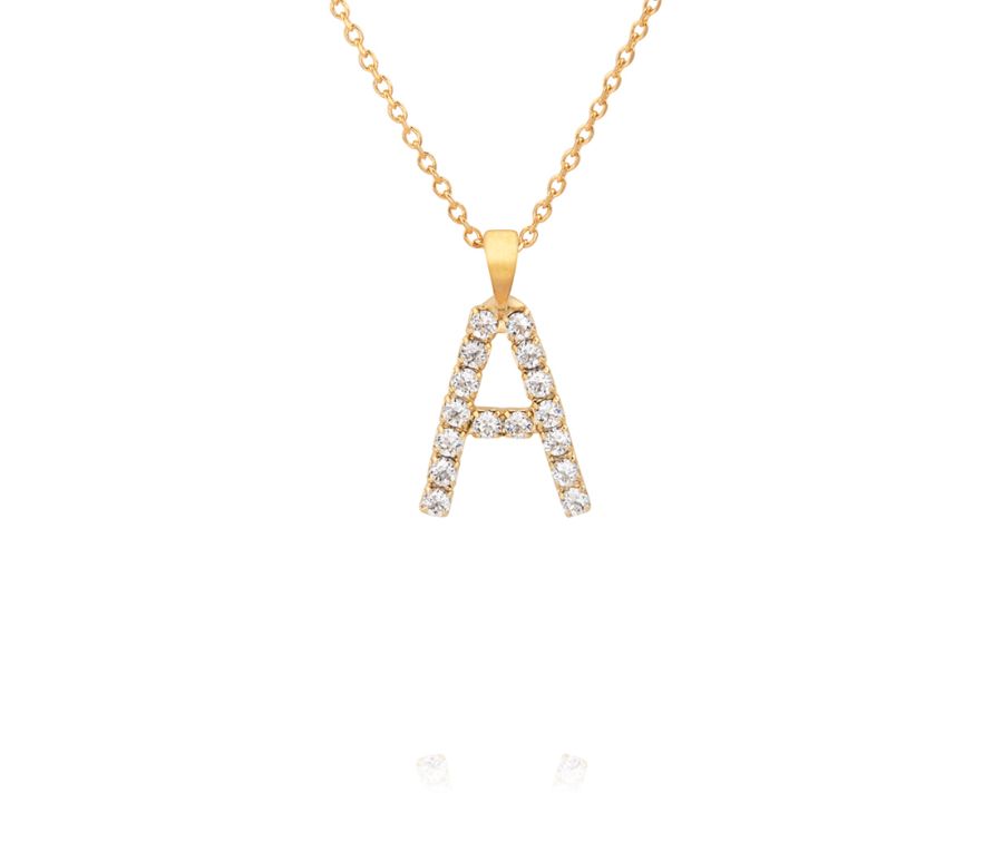 Adding a personal touch, the Mini Letter A Necklace in crystal features a 20mm x 13mm pendant on an adjustable 45-50 cm chain, crafted from 18k gold-plated raw brass, nickel and cadmium free a keepsake to treasure long after the flowers fade.