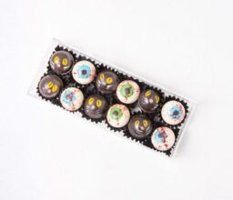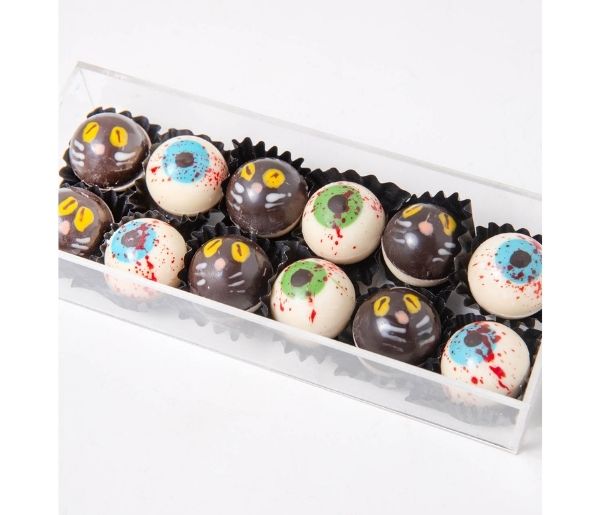 – 12 assorted Halloween truffles in milk, dark and white chocolate