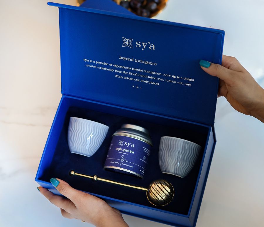 This mini set, especially curated for tea lovers to enjoy their tea-time or ‘me-time’ is another symbol of elegance by sy’a.