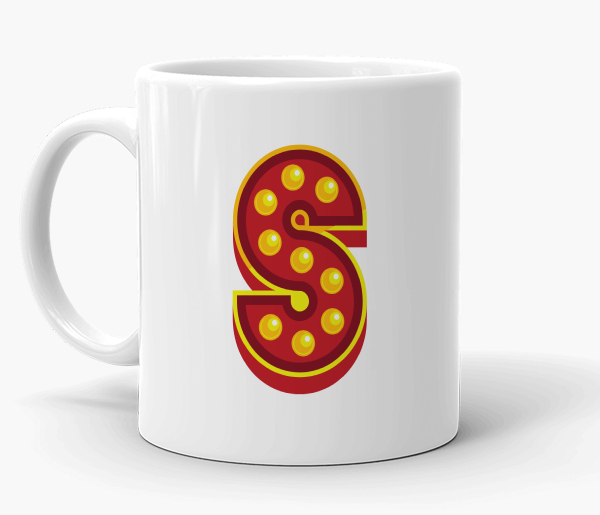 Choose the letter or number you want in a patterned design of theatre lights. Printed on 2 sides of the mug.