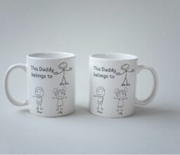 Personalized name Daddy belongs to hand drawing white mug.