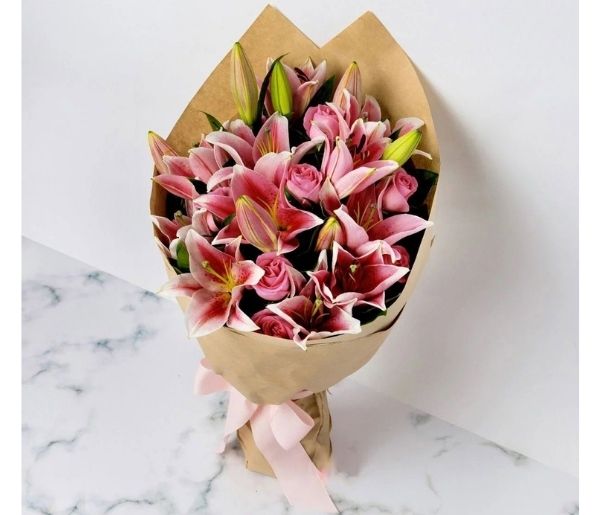 - 5 Pink Oriental Lilies