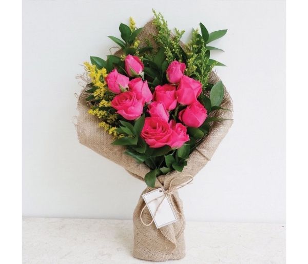 Hand Tied Bouquet in Natural Jute Wrapping and a Ribbon Bow.