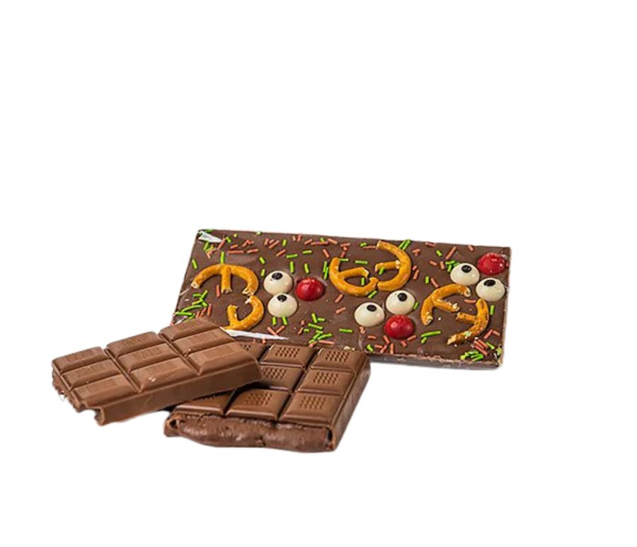 – 130gms Belgian milk chocolate bar with Reindeer design