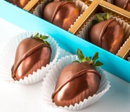 - 12 pieces chocolate covered, hand designed strawberries