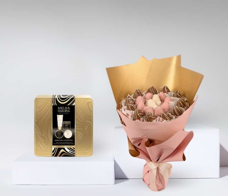 Strawberry Bouquet with Luxury Bathing Gift Set