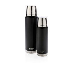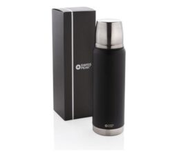 The Swiss Peak Elite series are with vacuum insulation and double wall 18/8 grade stainless steel. The powder coated black colour is built to last! No fading or cracking here! The inner wall is plated with copper for ultimate conductivity to keep drinks hot for 8 hours and cold for 24 hours. Hand washable and leakproof. Content 500 ml.