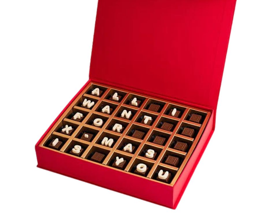 – 30 pieces assorted Milk chocolates with message All I want for Xmas is You